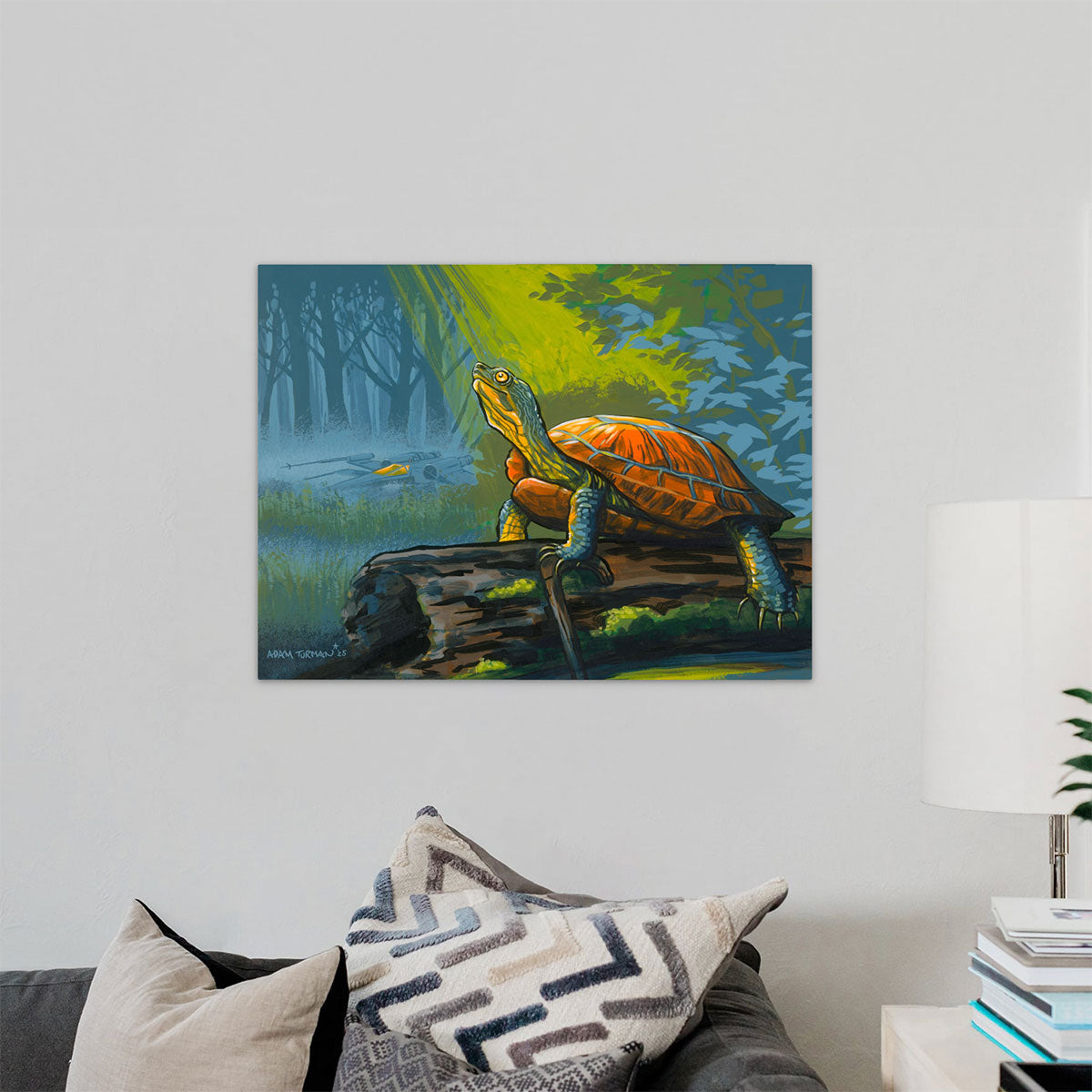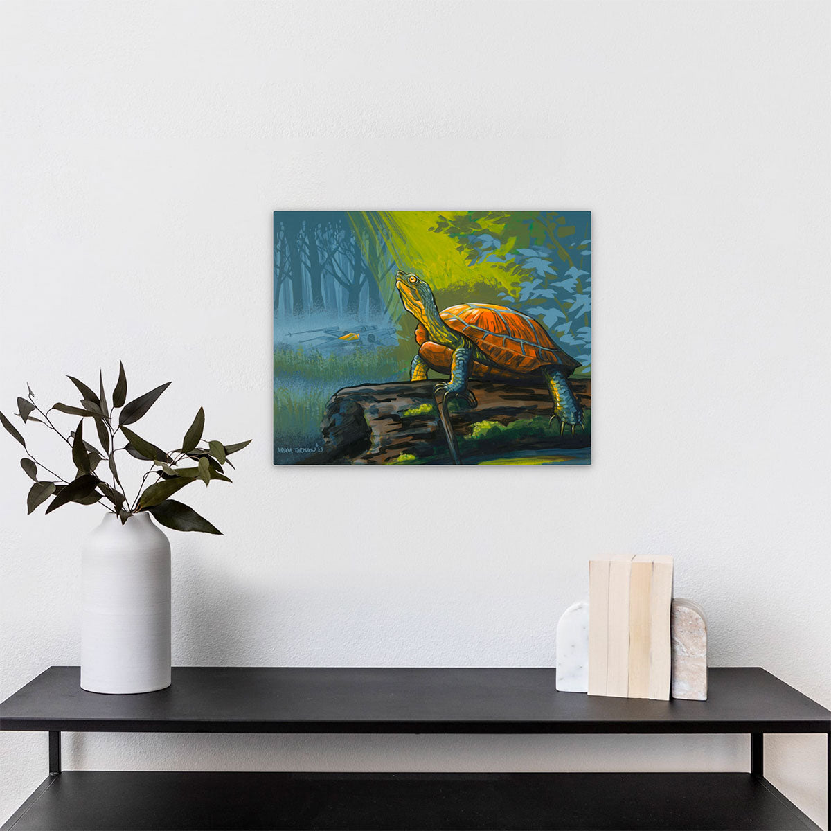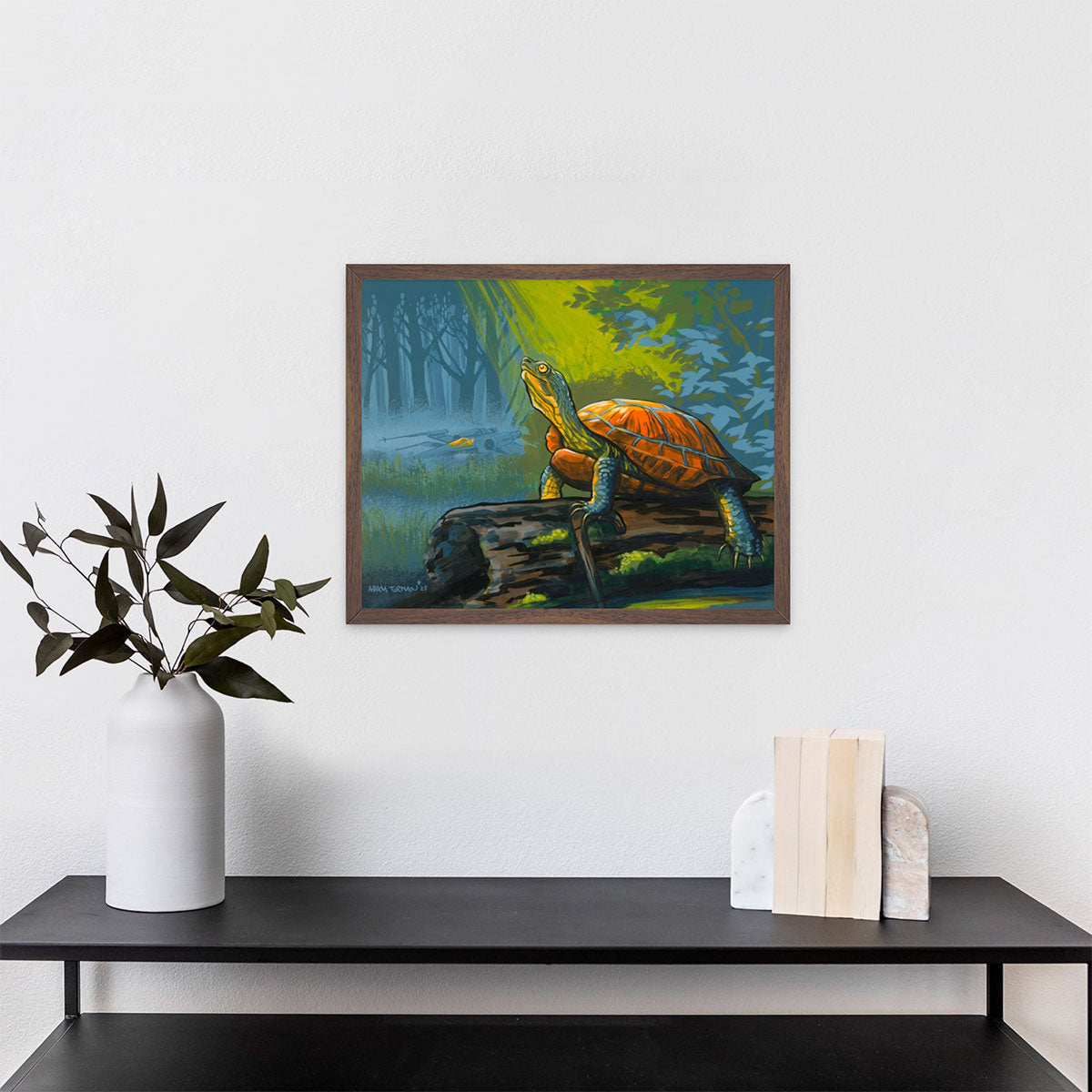 Sometimes I go with my first idea for a painting of a prompt. In this case, my first thought of the word "murky" was a foggy swampy bog. Who would inhabit this environment, and more importantly, who would I like to run into there? He carries a cane and speaks of wisdom. If you listen you could learn something. Oh and there must be turtles that lives in this system too.