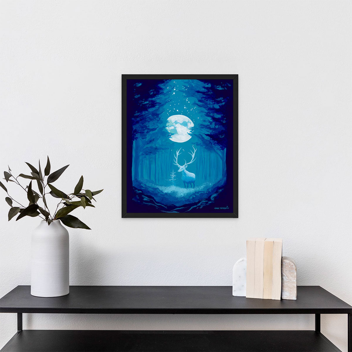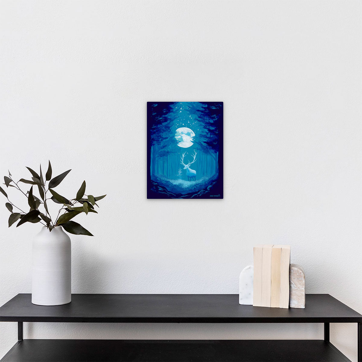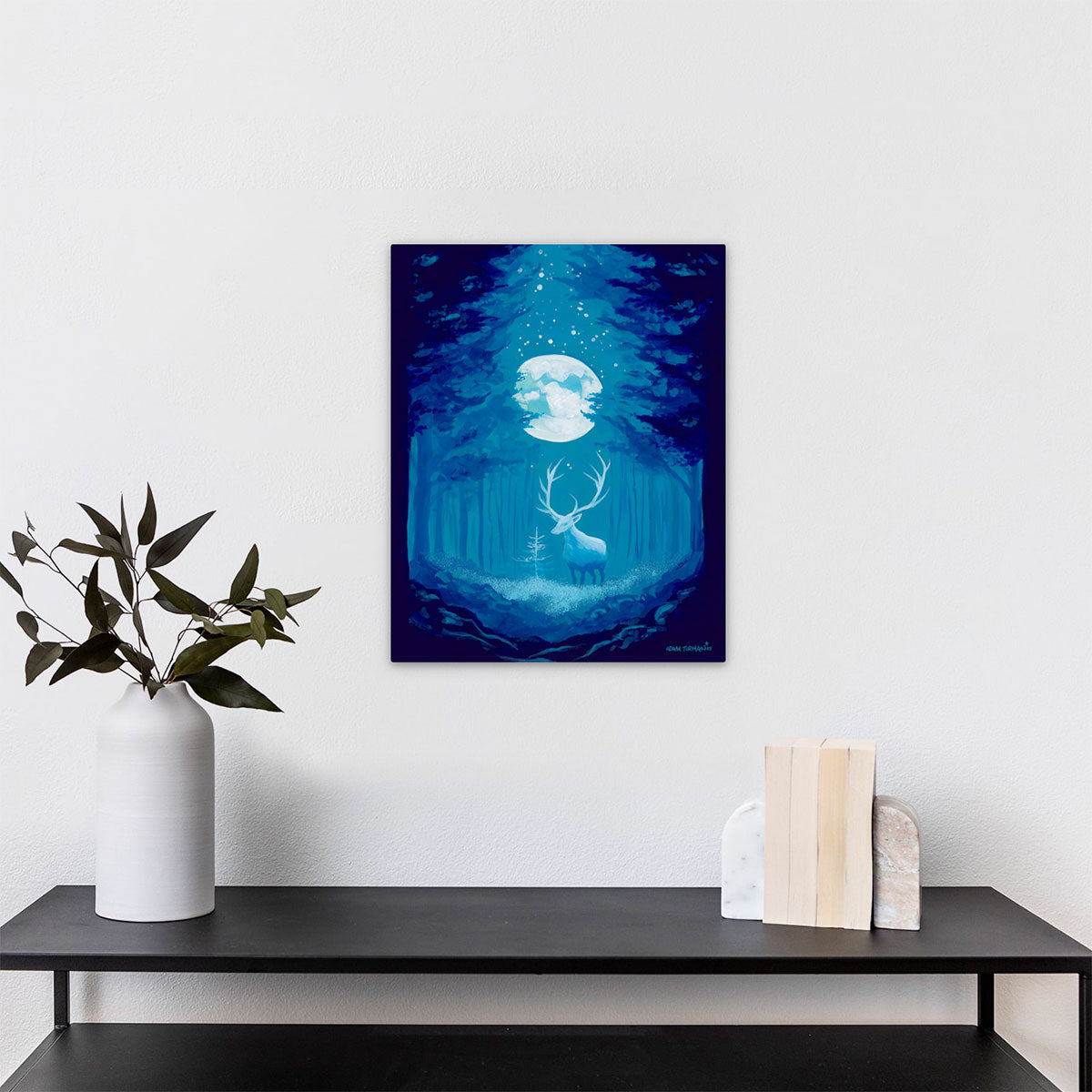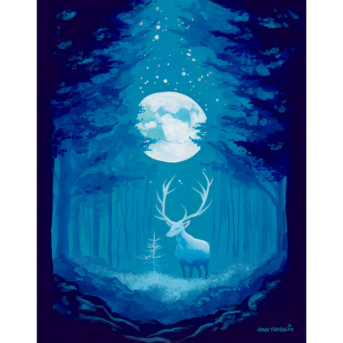 I took a couple of ideas from this very definitive prompt: Deer. I saw the Disney movie Bambi when I was a kid and always loved the amazing artwork of the forest and the scenes with the young fawn's father. I read the Harry Potter books when I was in my late 20's (no judging) and loved the Stag Patronus parts. They reminded me of the 1942 Bambi film. This painting is a mish-mash of those images with nostalgia.