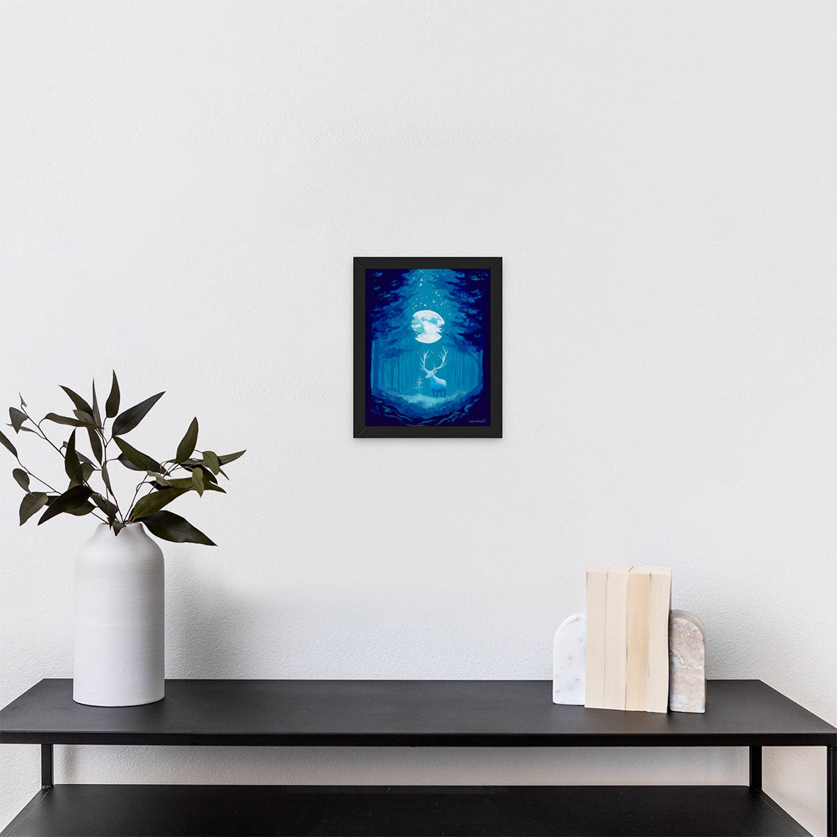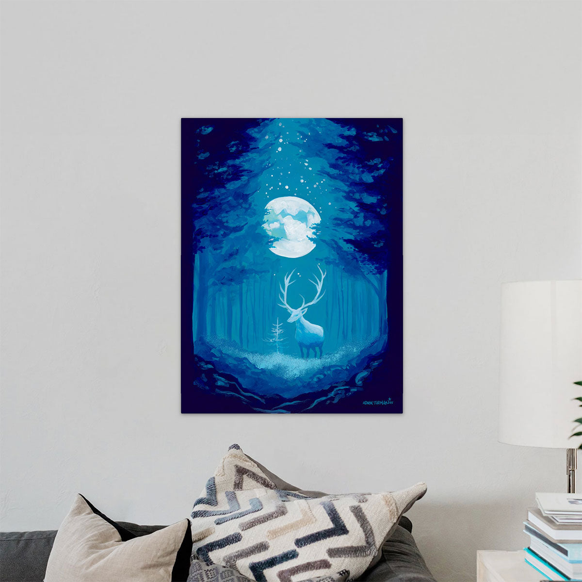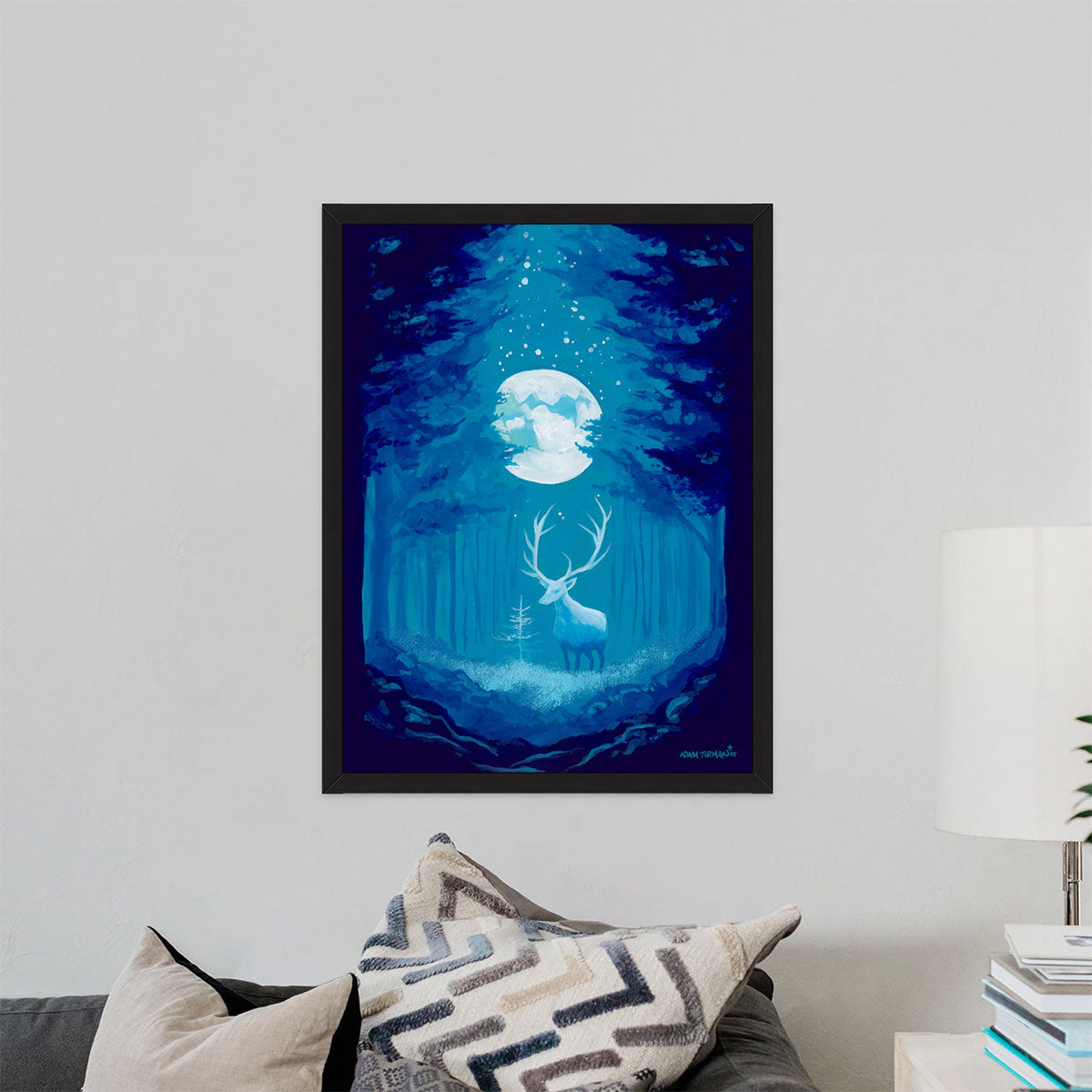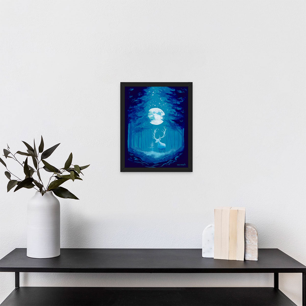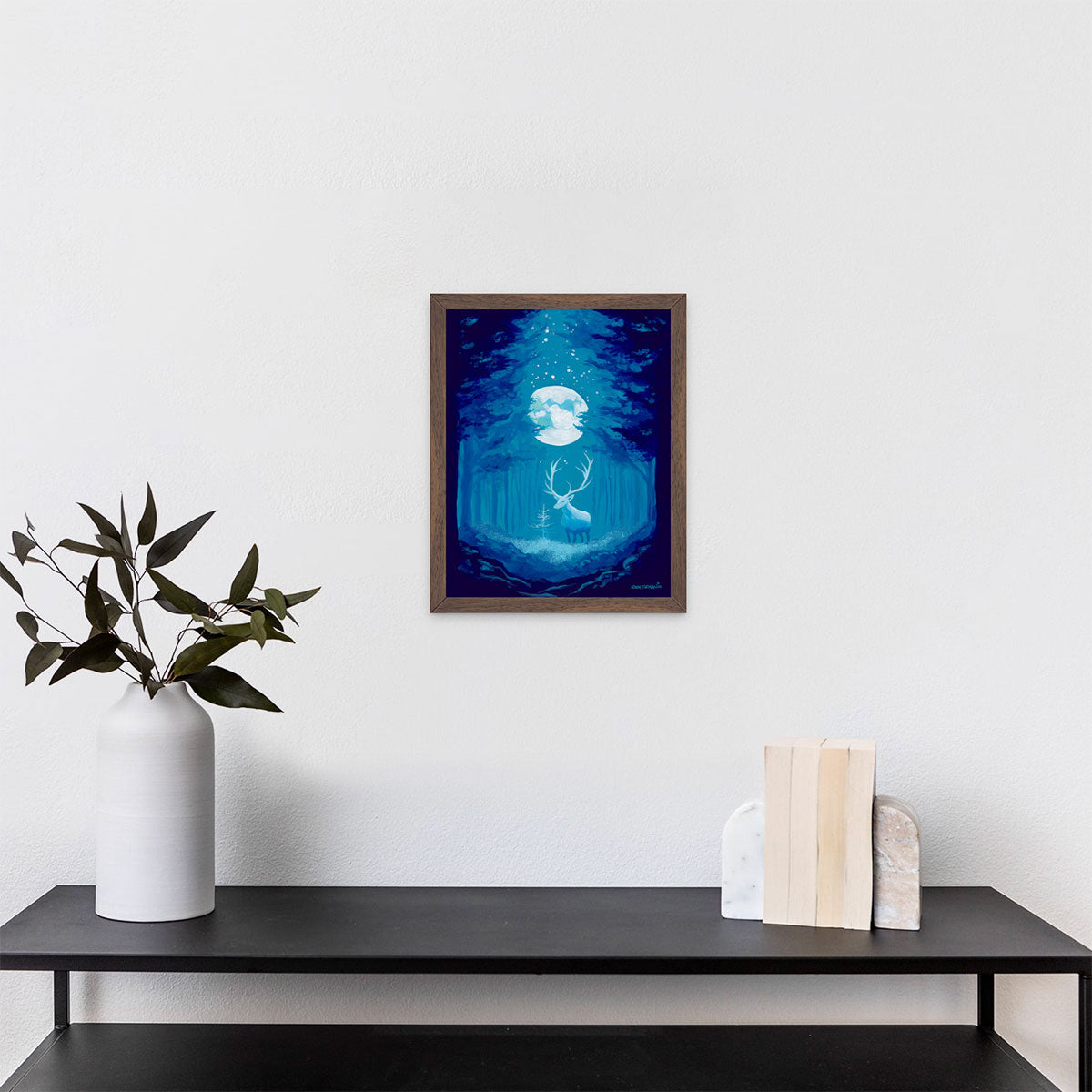 I took a couple of ideas from this very definitive prompt: Deer. I saw the Disney movie Bambi when I was a kid and always loved the amazing artwork of the forest and the scenes with the young fawn's father. I read the Harry Potter books when I was in my late 20's (no judging) and loved the Stag Patronus parts. They reminded me of the 1942 Bambi film. This painting is a mish-mash of those images with nostalgia.