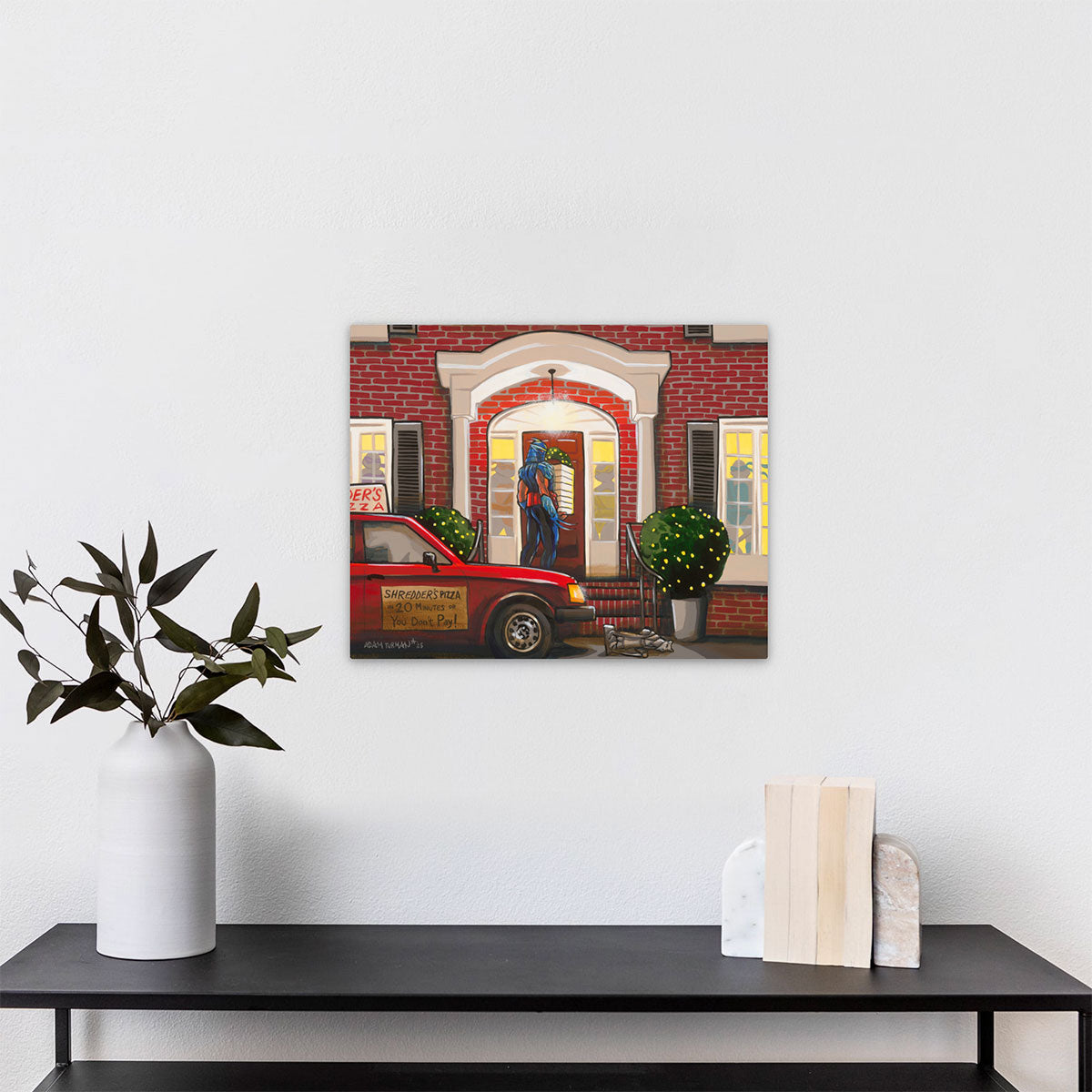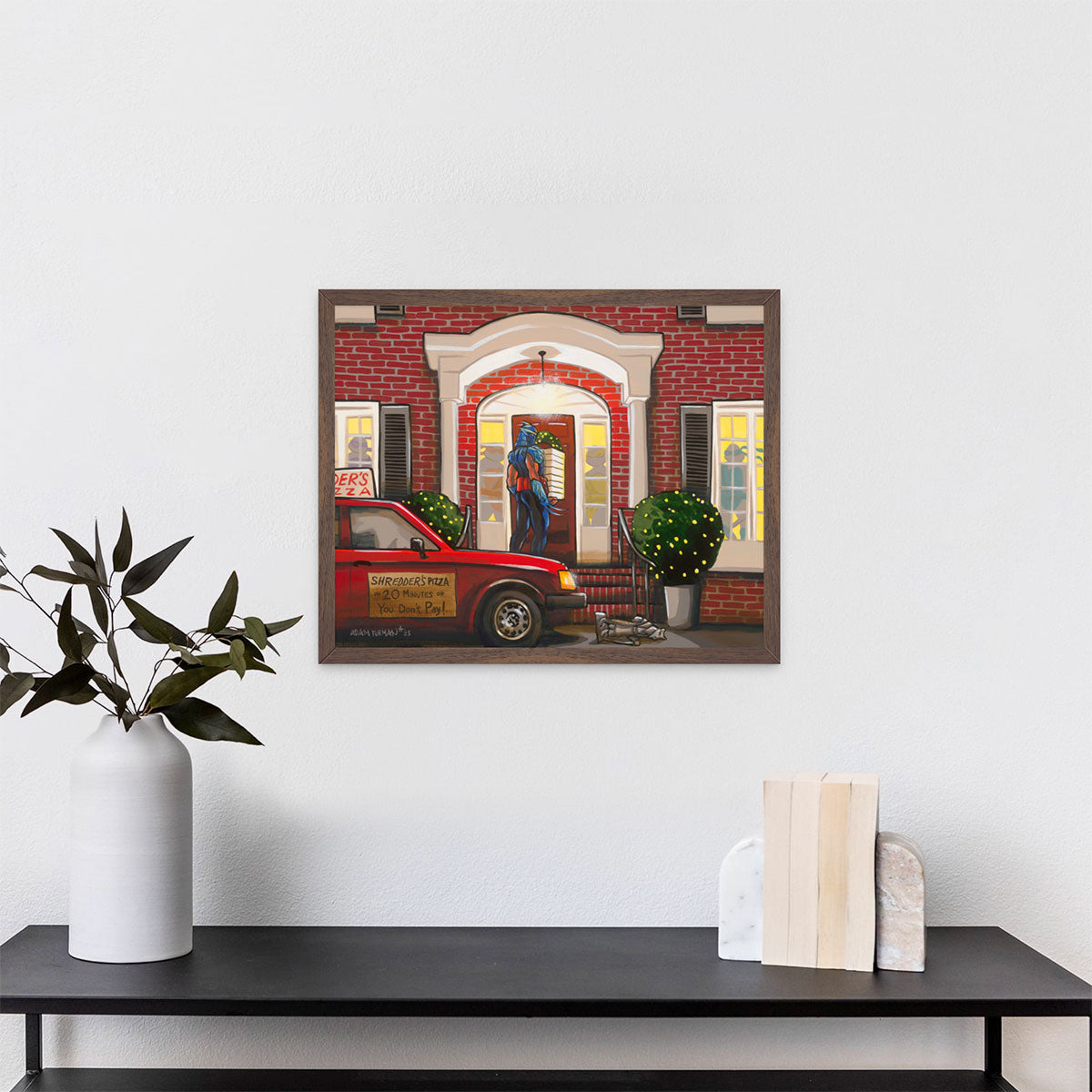 Sometimes I love to do a mash up. This prompt was hard for me. I thought of many totally different ideas and had sketched a few of them out. At the last minute, my studio mate said, "Hey what about Shredder from TMNTs?" I said hellz yeah! I took that idea and mashed it up with the delivery pizza scene from Home Alone, and what you get is Shredder's Pizza delivery.