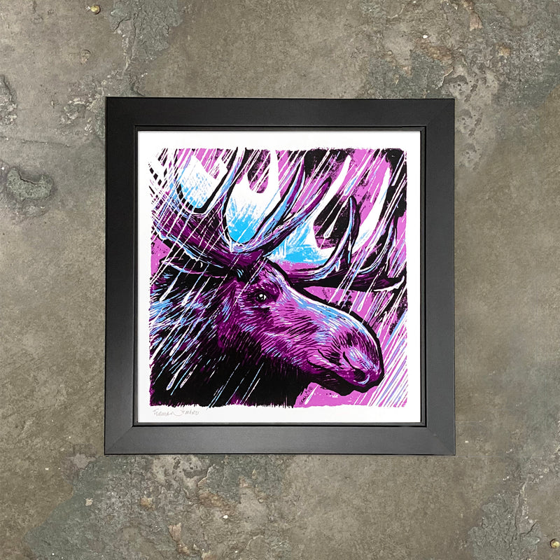 A purple moose bathing in the purple rain? Sure. And yes, there's a nod to his purple highness of Minnesota, the one and only Prince, in the title of this Woodland Series screen print.